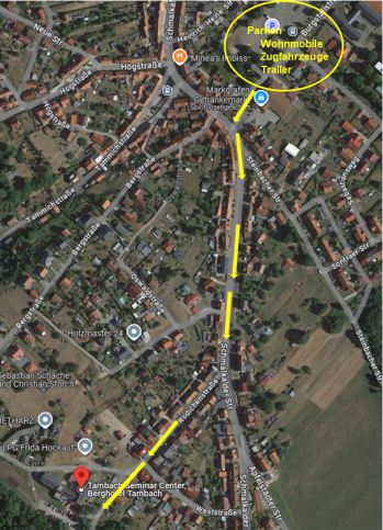 Weg vom Trailer- und Wohnmobilstellplatz zum Hotel