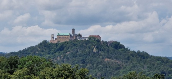 Deshalb ist es leider wegen der Größe unserer Gruppe organisatorisch nicht möglich, die Wartburg direkt zu besuchen. Aber es gibt mehrere grandiose Panorama-Blicke auf dieses markante Bauwerk. Der wohl bekannteste ist der vom Burschenschaftsdenkmal im Süden Eisenachs. Diesen steuern wir an uns verbinden unseren Aufenthalt dort mit einem entspannten Imbiss im Berghotel Eisenach, von dessen Terrasse aus man den besten Blick auf die Wartburg hat.