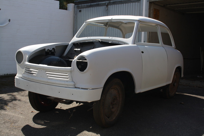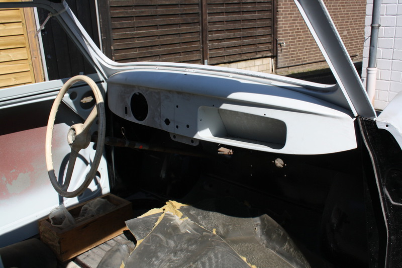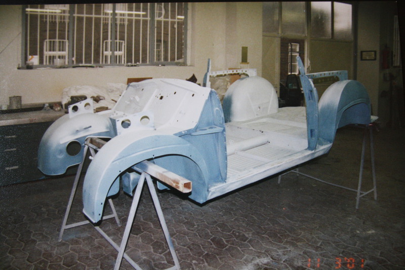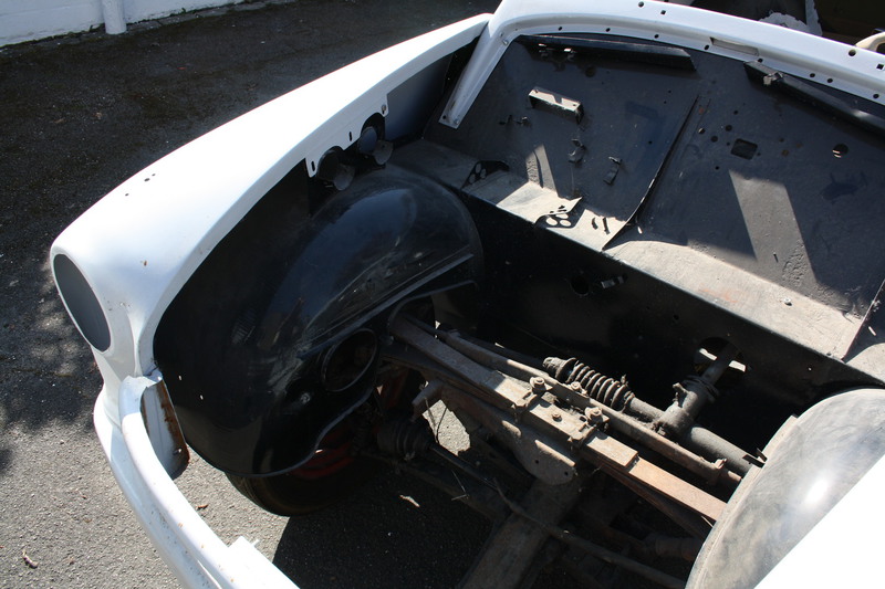 Die Blechanbauteile sind, bis auf Motorhaube und Heckteil, neu oder gesandstrahlt und grundiert. Hier ist vor dem lackieren nur noch wenig Arbeit nötig.