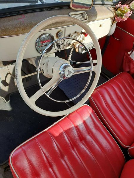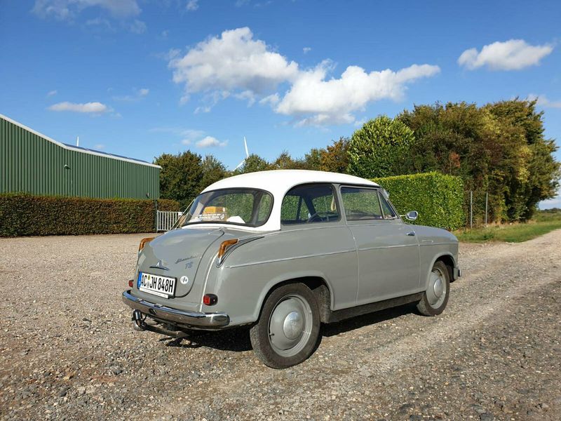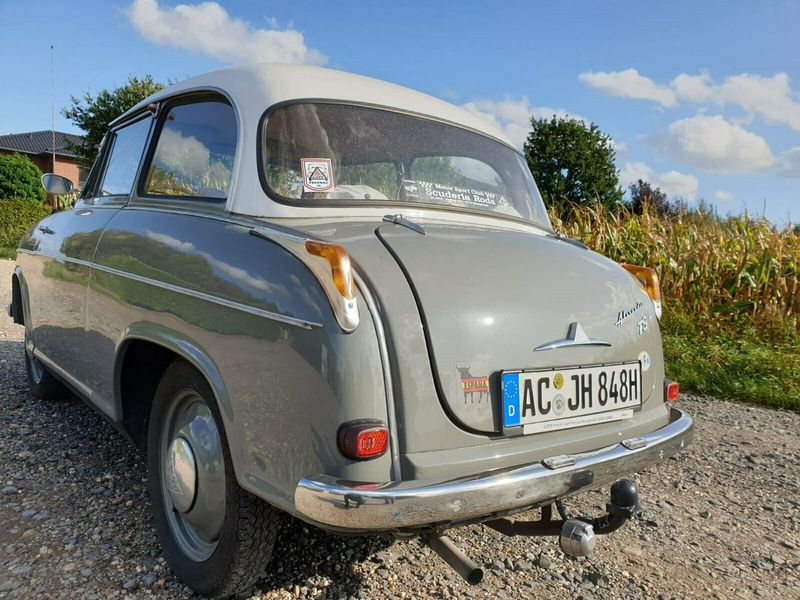 Dieser Lloyd Alexander TS ist seit 1988 im Besitz des aktuellen Eigentümers. Er hat ihn 1998 mit Unterstützung der Lloyd-Freunde IG e.V. restauriert und in der orginalen Farbkombination weißes Dach, graues Unterteil lackieren lassen. Die rote Kunstlederausstattung ist noch orginal, die Sitze wurden lediglich aufgepolstert, der Himmel erneuert. Im Laufe der Zeit wurden Motor und Getriebe überholt und das Auto wurde immer liebevoll gepflegt. Der Alexander verfügt über zeitgenössisches Zubehör wie die sehr gesuchte Sonnenschute, Radio oder einen Chromhupenring. Das Auto hat gerade die TÜV-Prüfung ohne Mängel bestanden, vorher wurden jedoch die Bremsanlage überholt und alle Radbremszylinder erneuert.